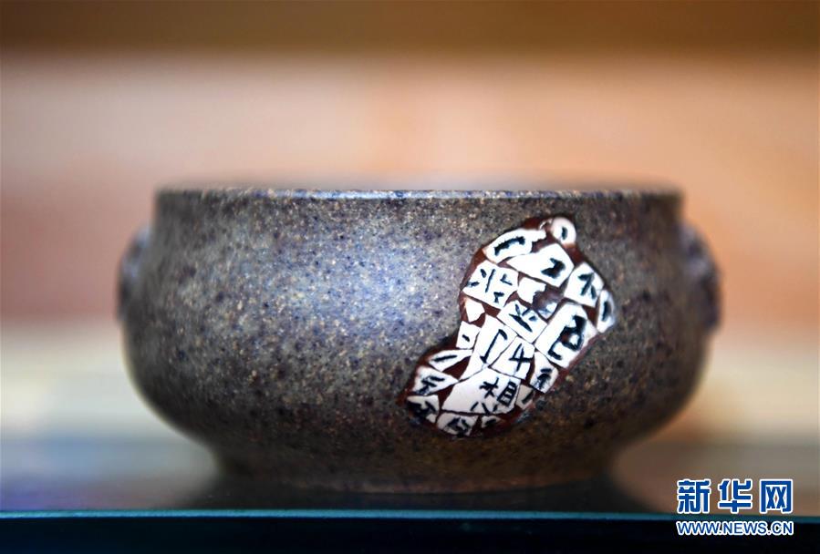 6月8日拍摄的李军航锔刻好的瓷器。新华社记者 王晓 摄