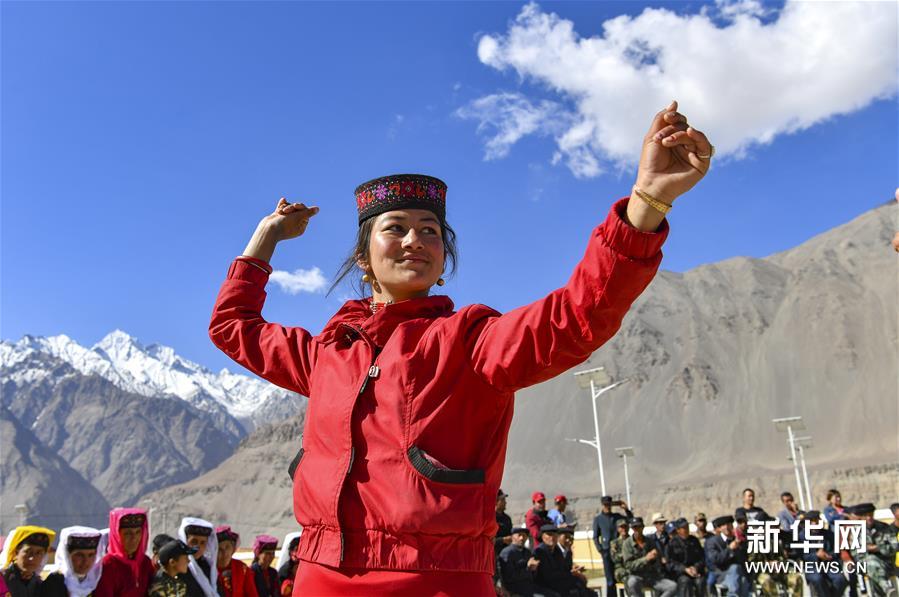 热斯喀木村村民在演出现场随着音乐欢快起舞(6月6日摄)。新华社记者 胡虎虎 摄