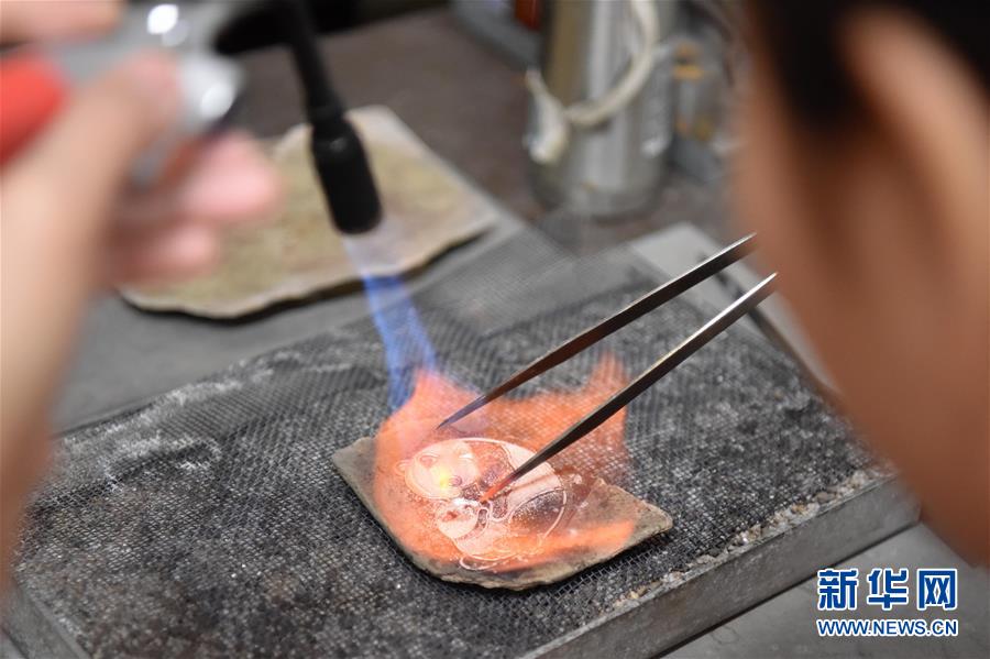 6月10日,在道安银花丝工作室,匠人在进行焊接。新华社发(胥冰洁摄)
