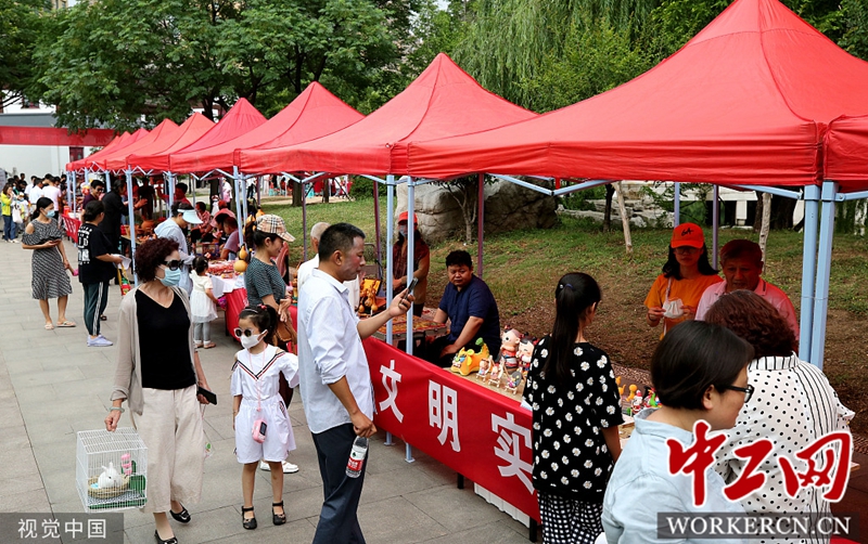 2020年6月10日,山东枣庄,东湖公园内各具特色的非物质文化遗产展示吸引市民驻足观看。图片来源:孙中喆/视觉中国