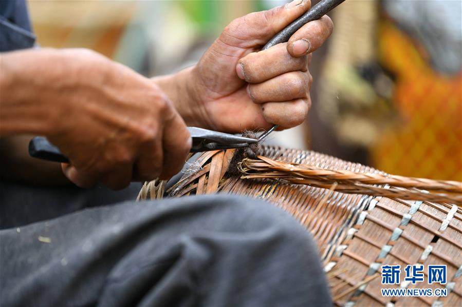 6月11日,在湖北省宣恩县城民族路,篾匠宋兴武在维修。 湖北省宣恩县是土家族、苗族、侗族等少数民族聚居区,竹制的背篓、箩筐、簸箕等用品与群众生产生活息息相关。人们或购买篾匠们精心编织的“篾货(当地人对竹篾制品的统称)”,或花上三五元钱对“篾货”进行修理后继续使用。在宣恩县,传承着湖北省非物质文化遗产“宣恩竹编”技艺的手艺人,用灵巧的双手为当地居民提供服务,满足百姓订做、维修竹篾制品的需要,成为当地一道独特的风景。 新华社发(宋文 摄)