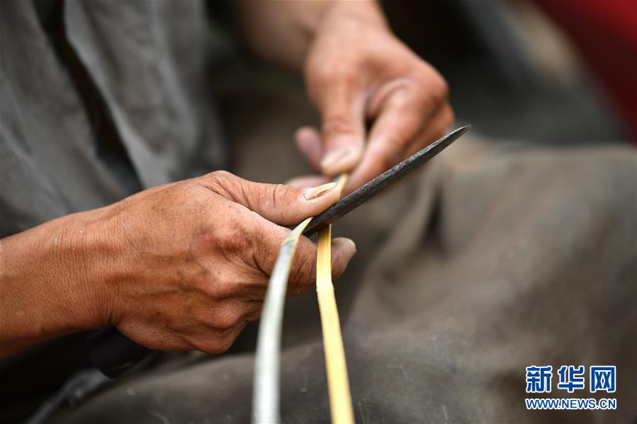 6月11日,在湖北省宣恩县城民族路,篾匠黄明准备编织竹篾。 湖北省宣恩县是土家族、苗族、侗族等少数民族聚居区,竹制的背篓、箩筐、簸箕等用品与群众生产生活息息相关。人们或购买篾匠们精心编织的“篾货(当地人对竹篾制品的统称)”,或花上三五元钱对“篾货”进行修理后继续使用。在宣恩县,传承着湖北省非物质文化遗产“宣恩竹编”技艺的手艺人,用灵巧的双手为当地居民提供服务,满足百姓订做、维修竹篾制品的需要,成为当地一道独特的风景。 新华社发(宋文 摄)