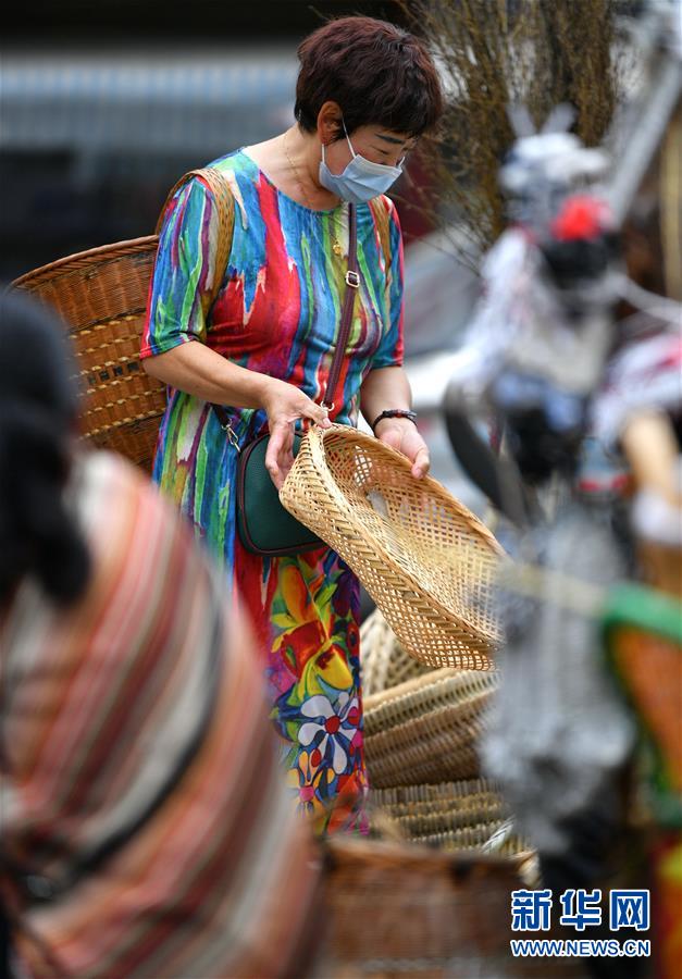 6月11日,在湖北省宣恩县城民族路,一位市民在挑选用于筛灰的筛篮。 湖北省宣恩县是土家族、苗族、侗族等少数民族聚居区,竹制的背篓、箩筐、簸箕等用品与群众生产生活息息相关。人们或购买篾匠们精心编织的“篾货(当地人对竹篾制品的统称)”,或花上三五元钱对“篾货”进行修理后继续使用。在宣恩县,传承着湖北省非物质文化遗产“宣恩竹编”技艺的手艺人,用灵巧的双手为当地居民提供服务,满足百姓订做、维修竹篾制品的需要,成为当地一道独特的风景。 新华社发(宋文 摄)