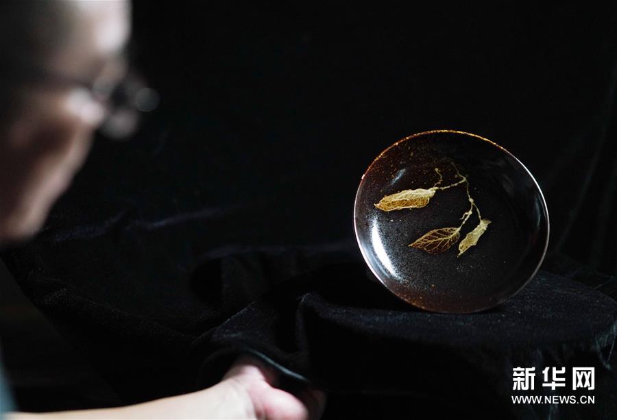伍映山给访客介绍一件木叶盏作品(6月10日摄)。“世界上没有两片相同的叶子,所以也不会有两只相同的木叶盏。”今年50岁的伍映山如是介绍道。 伍映山是江西吉州窑传统制瓷技艺传承人,而木叶盏正是吉州窑传统制瓷技艺的代表性作品。作为古代吉州窑独有的一项陶瓷烧造工艺,木叶盏独特而神秘。在烧制前,需要先在胎上施一层黑釉,然后在经过处理的树叶上施一层淡釉,再把树叶贴在瓷坯体上开窑烧制。在高温作用下,叶身收缩、消失,最终叶脉与盏融为一体,在窑变中成为永恒。 历史上,吉州窑在南宋盛极一时。如今,在工业化生产的冲击下,一些传统制瓷技艺面临消失的危险。2003年才开始接触制瓷的伍映山决定重拾吉州窑传统制瓷技艺。他查阅史料,走访名窑,寻找关于木叶盏制作技艺的蛛丝马迹,经过数年的努力与钻研,成功用古法烧制出木叶盏。 现在的伍映山,在制瓷的同时,还将精力放在传承与发扬传统技艺上,有不少学生在伍映山的制瓷工坊“映山堂”学习技艺。“传统与现代相辅相成,传统技艺要与时俱进做出改变,但也不能完全湮没在现代工艺中。”伍映山说道。这恰恰就像木叶盏中蕴含的朴素哲理一样,在窑火中拥抱改变,在重生中收获永恒。新华社记者 胡晨欢 摄