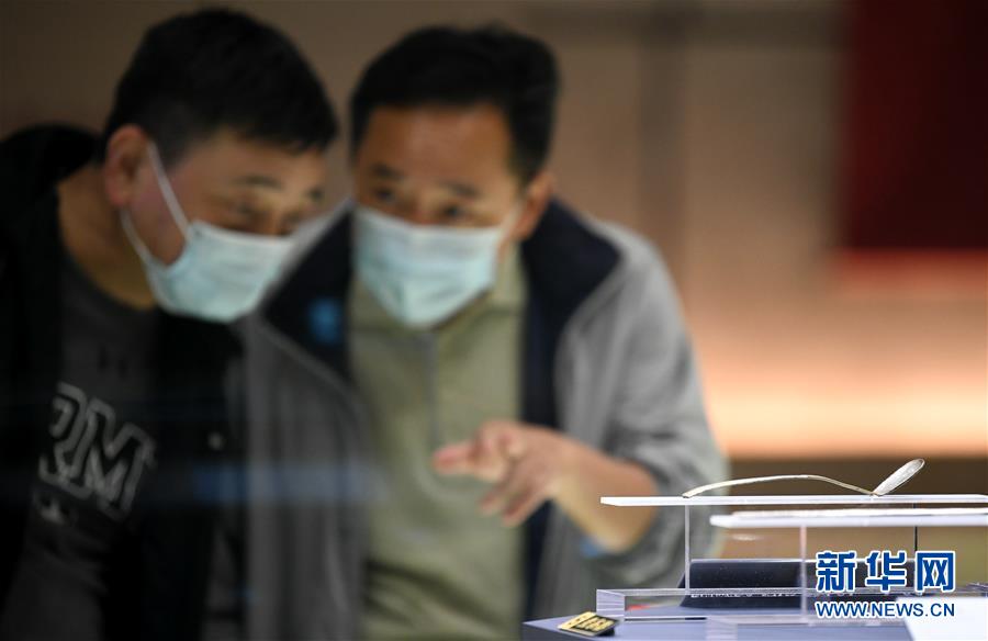 6月16日,游客在陕西历史博物馆国宝厅内参观法门寺出土皇家茶具。新华社记者 李一博 摄