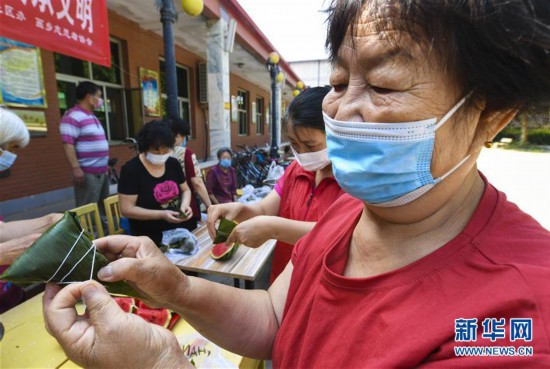 6月22日,志愿者在河北省武强县迎宾社区包粽子。 当日,河北省武强县迎宾社区联合武强县画乡志愿者协会开展“包粽子 迎端午”活动,传承传统文化,增进邻里感情。 新华社记者 李晓果 摄