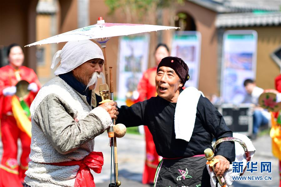 6月24日,村民在表演花鼓戏。 当日,在河南省洛阳市洛宁县罗岭乡讲理村,村民登台表演文艺节目,庆祝2020首届洛阳乡村文化旅游节开幕。近年来,洛宁县在推进美丽乡村建设的过程中不断强化乡村文化建设,丰富村民文化生活。 新华社记者冯大鹏摄