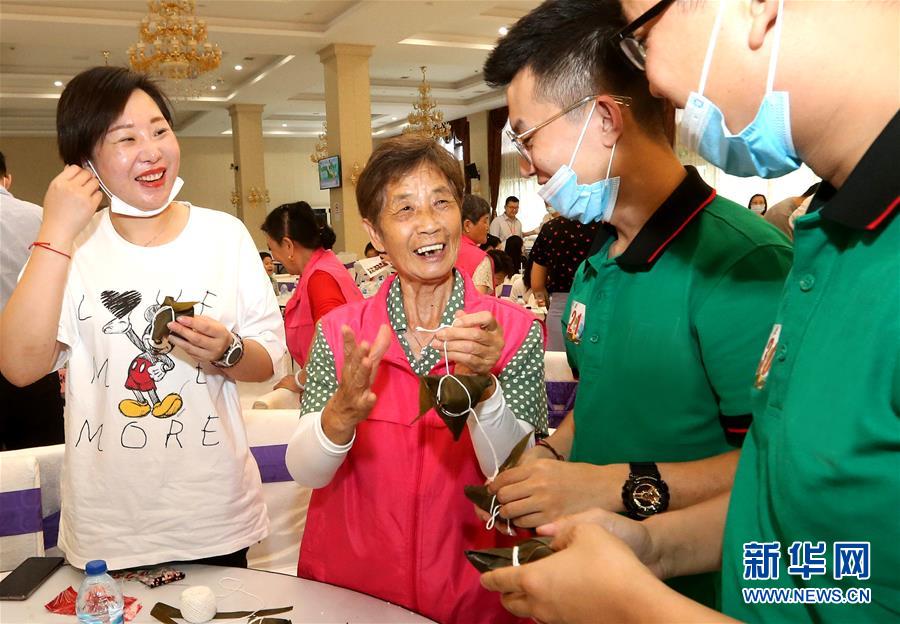 6月24日,上海一家企业员工和上海新虹桥街道社区居民一起包粽子迎端午。 端午节临近,各地举行包粽子、做香包、赛龙舟等丰富多彩的民俗文化活动,迎接传统佳节的到来。 新华社记者 陈飞 摄