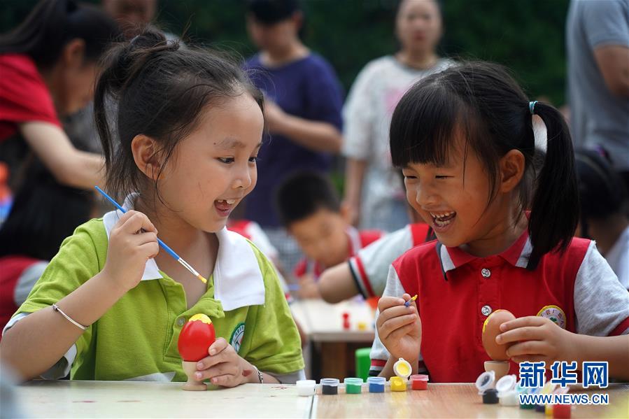 6月24日,南昌市湾里区站前街道文明北路社区的孩子们在画彩蛋。 端午节临近,各地举行包粽子、做香包、赛龙舟等丰富多彩的民俗文化活动,迎接传统佳节的到来。 新华社记者 万象 摄