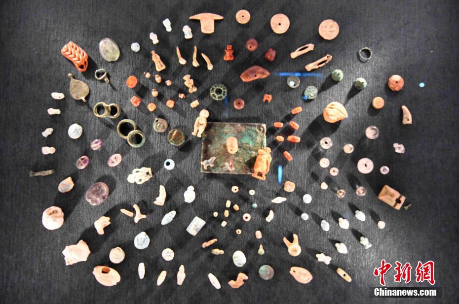 巴黎大皇宫于7月1日恢复对公众开放,历史文化体验展《庞贝》也于同日面向公众开放。6月30日为媒体开放日,大皇宫与展览向媒体开放,记者当天在巴黎大皇宫近距离体验“庞贝古城”。图为庞贝古城出土的历史文物如普通百姓的护身符,由各种不同材质制成。中新社记者 李洋 摄