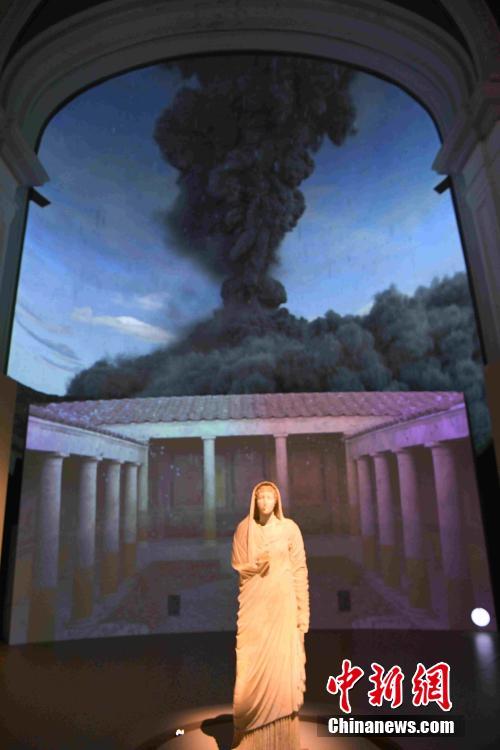 巴黎大皇宫于7月1日恢复对公众开放,历史文化体验展《庞贝》也于同日面向公众开放。6月30日为媒体开放日,大皇宫与展览向媒体开放,记者当天在巴黎大皇宫近距离感受“庞贝古城”。图为展览中数码全景再现维苏威火山喷发,将庞贝瞬间掩埋的过程。中新社记者 李洋 摄
