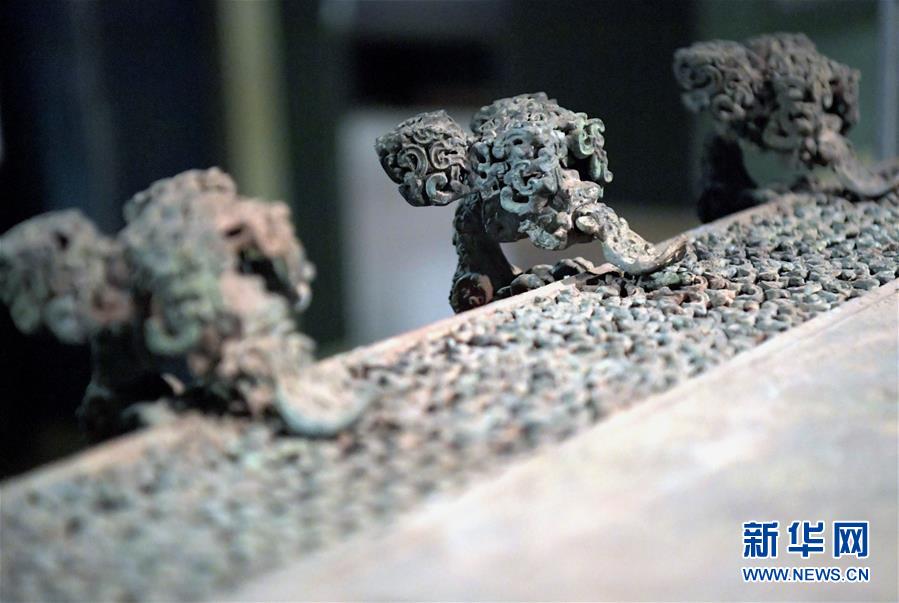 这是河南博物院展厅里的云纹铜禁局部(2019年11月18日摄)。 新华社记者 李安 摄