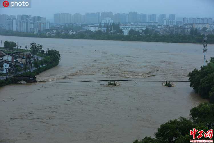 安徽黄山市屯溪国家级文物保护单位——明代镇海桥(屯溪老大桥)被山洪冲毁。(本组图片来源东方IC,版权作品,请勿转载。)