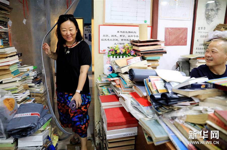 7月13日,一名读者(左)走进复旦旧书店。 新华社记者 方喆 摄