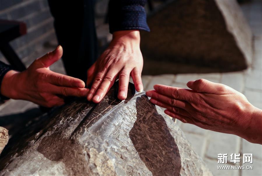 在南京金线金箔总厂,王必生(右)和同事进行打箔前的测量工作(2019年12月3日摄)。新华社记者 杨磊 摄