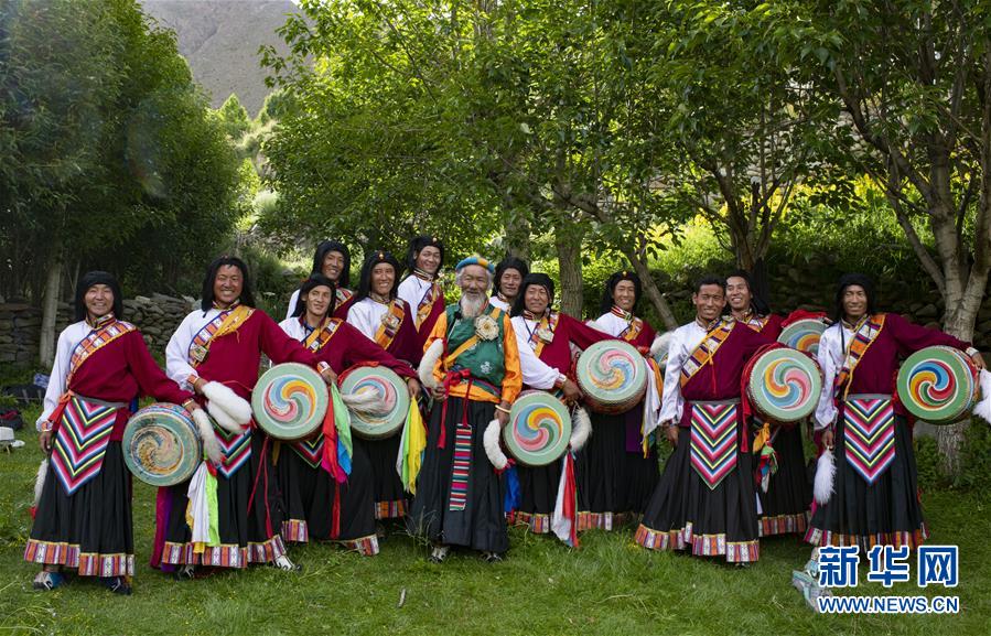 尼玛老人(中)和他的弟子们合影(7月1日摄)。新华社记者 普布扎西 摄