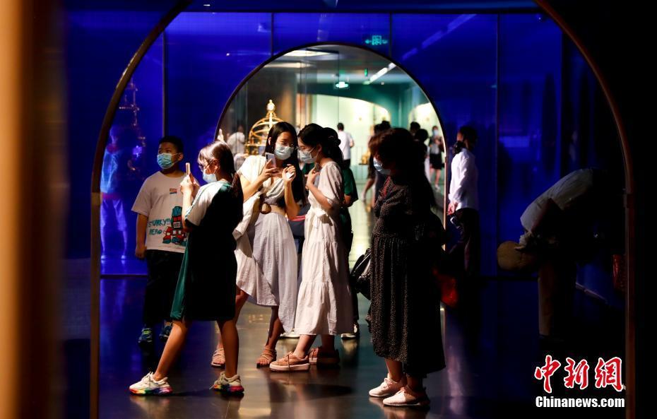 7月21日,游客在北京故宫博物院钟表馆参观。故宫博物院20日发布公告,7月21日起将按照预约、限流、错峰原则,有序开放包括珍宝馆、钟表馆等室内展厅。这距离故宫因疫情防控需要宣布于1月25日闭馆已有177天。