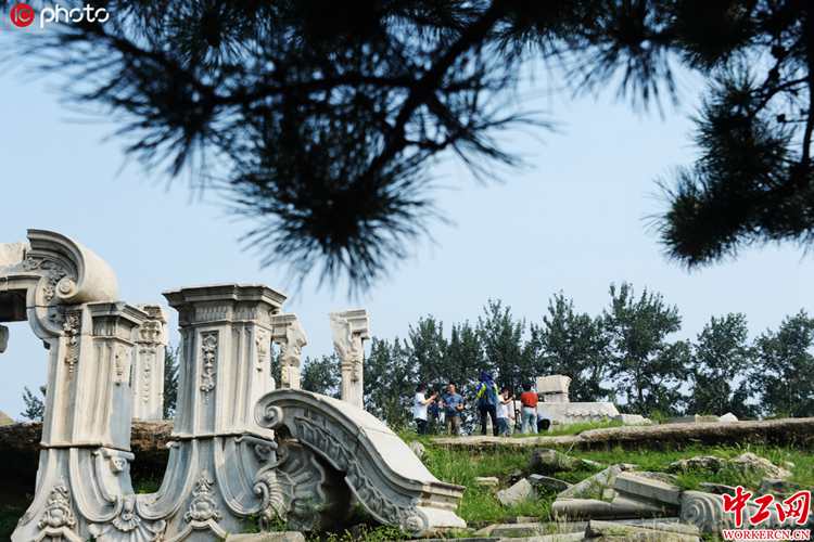 2020年7月22日,北京大学考古文博学院的工作人员在对圆明园古迹进行三维扫描。(本组图片来源东方IC,版权作品,请勿转载。)