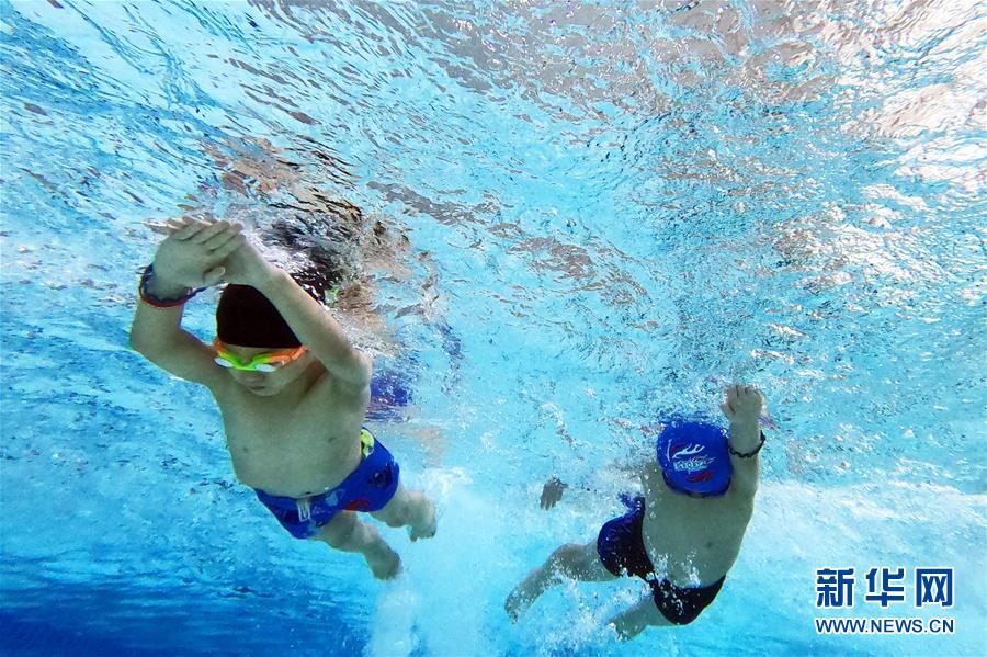 7月22日,孩子们在江苏省常州市武进区游泳馆学习游泳。 暑期来临,各地少年儿童积极参与各种形式的文化娱乐、强身健体活动,乐享多彩假期。 新华社发(陈暐 摄)