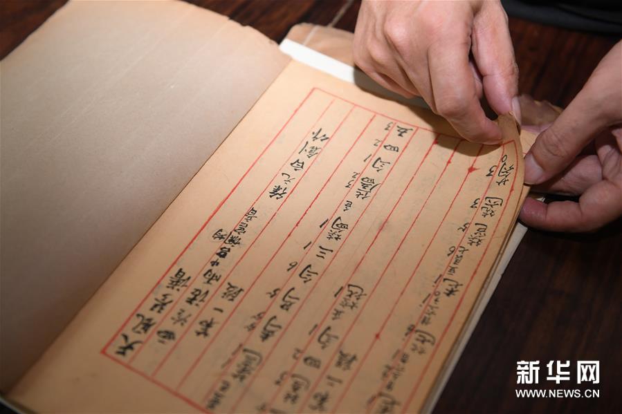 7月22日,徐君跃在浙江杭州“西湖琴社”内展示爷爷徐元白创作并抄录的琴谱。 新华社记者 翁忻旸 摄