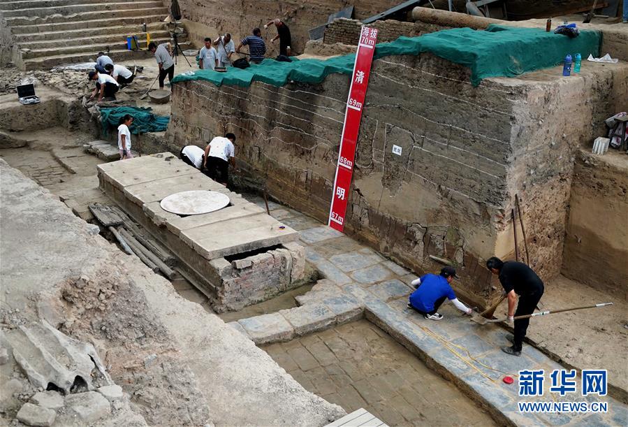 工作人员在河南省开封市州桥及附近汴河遗址进行清理发掘(7月27日摄)。新华社记者 李安 摄