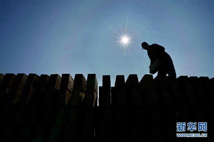 7月30日,河北省任丘市出岸镇古建砖厂工人在摆放砖坯。 新华社记者 牟宇 摄