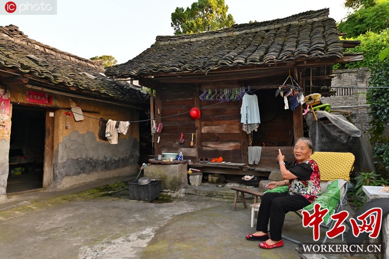 2020年7月29日拍摄的贵阳市开阳县禾丰乡布依土司古寨马头寨。布依族老人在讲述古老的建筑历史。图片来源:秦刚/IC photo
