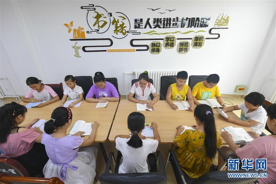 8月1日,在河北省香河县钳屯镇农家书屋,小学生们在阅读。 暑假期间,河北省香河县开展“书香润心田 ‘悦’读伴我行”读书活动,组织农村儿童定期集中读书交流,分享读书体会,培养阅读习惯,度过一个有意义的暑假。 新华社记者李晓果摄