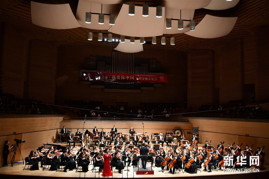 8月1日,天津交响乐团复工复演后的首场演出——《我爱你中国》大型交响系列音乐会在天津大剧院音乐厅上演。新华社记者 周润健 摄