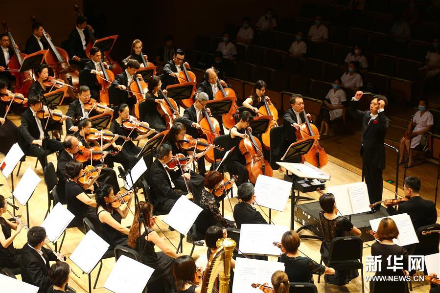 8月1日,天津交响乐团复工复演后的首场演出——《我爱你中国》大型交响系列音乐会在天津大剧院音乐厅上演。新华社记者 周润健 摄