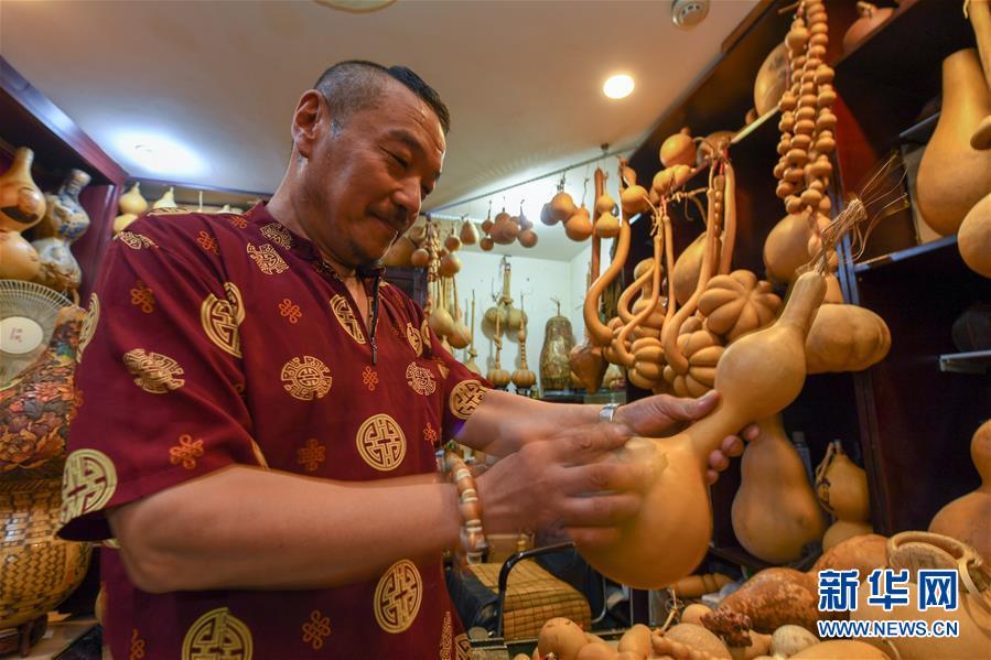 8月5日,侯景伟打磨葫芦外皮。 今年55岁的吉林四平人侯景伟自幼与家人学习雕刻、烙画艺术。经过多年潜心研究,他将浮雕和烙画工艺相结合,通过抛光、起稿、雕刻、烙烫、套色等十余道工艺,制作展现传统文化、民俗故事的葫芦工艺品。2020年,侯景伟被评为四平市非物质文化遗产项目侯氏葫芦雕刻烙画代表性传承人。他说:“希望有更多人加入到非遗传承队伍中,让小葫芦‘讲’出更多民俗故事。” 新华社记者 张楠 摄