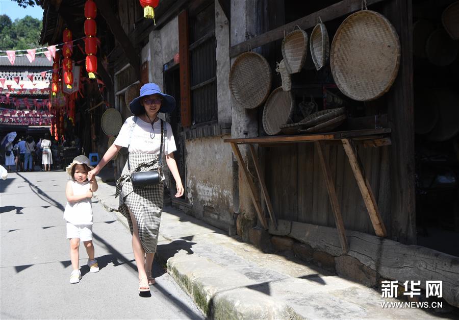 8月5日,游客在丰盛古镇游览。新华社记者 王全超 摄