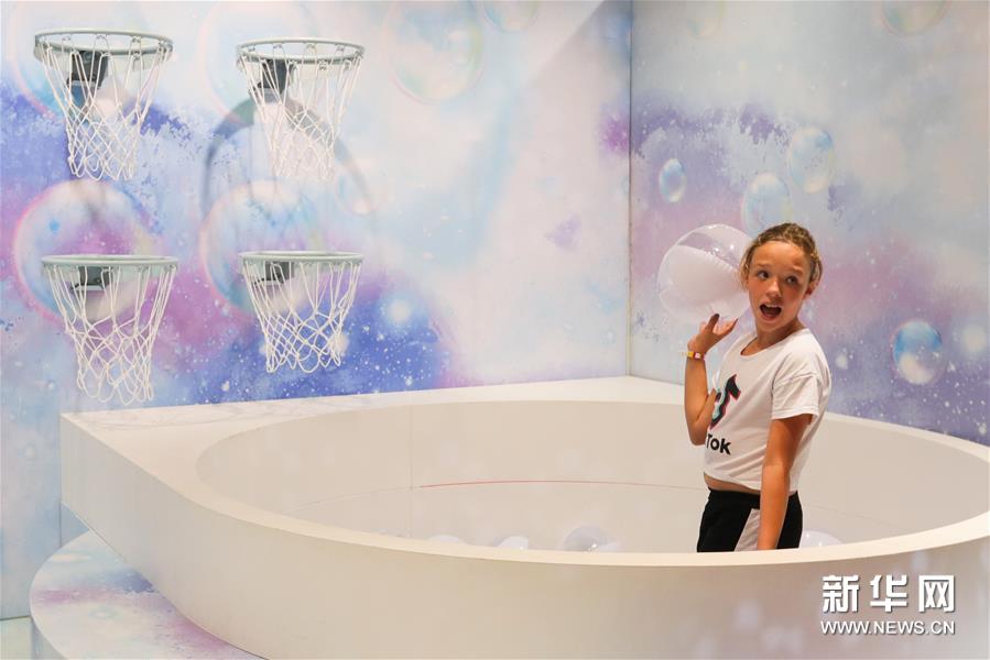 8月7日,一名女孩在比利时布鲁塞尔的“微笑畅游”博物馆内摆姿势录制短视频。 新华社记者 郑焕松 摄