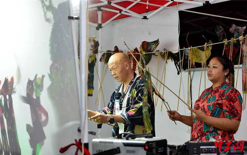 2020年8月10日,合肥,在汲桥新村社区,小朋友在体验皮影戏表演。葛传红/视觉中国
