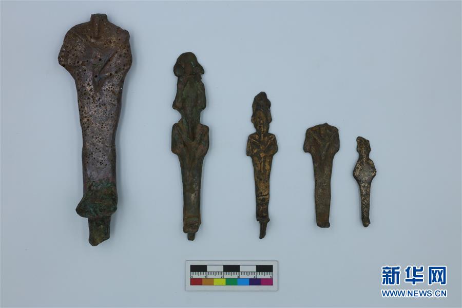这是2020年3月28日在埃及卢克索拍摄的中埃卢克索孟图神庙联合考古项目发掘出土的文物。 新华社发