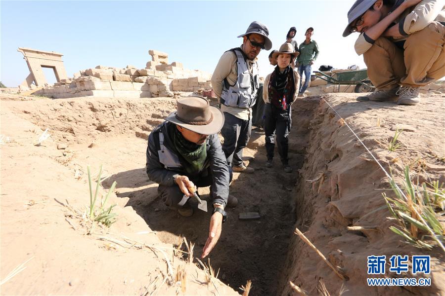 2019年12月17日,在埃及卢克索,中埃卢克索孟图神庙联合考古项目成员在现场工作。 新华社发