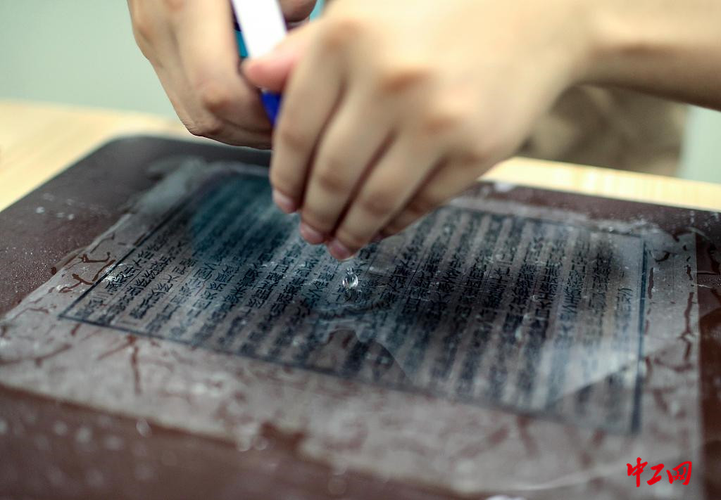 在位于成都市洛带古镇的四川西部文献修复中心内,古籍修复师们通过配纸染纸、配制浆糊、分解书籍、填补虫洞等方式对古籍进行修复,让许多残损的古籍文献得以重获新生。 王磊(四川分社)/中新社/视觉中国