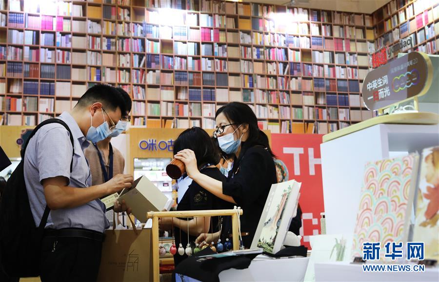 8月13日,读者在书展现场了解读书文创产品。 8月12日,2020上海书展在上海展览中心开幕。全国各大出版社汇聚书展现场,不同年龄层的读者都能徜徉其中,感受书香魅力。 新华社记者 方喆 摄