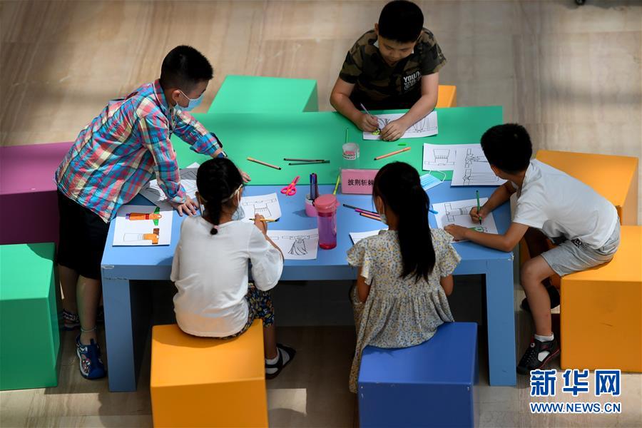 8月15日,小朋友在长沙博物馆参加文物服饰绘画活动。 暑假期间,许多家长带着小朋友来到位于湖南省长沙市的长沙博物馆参观体验,充实暑期生活。 新华社记者 陈泽国 摄