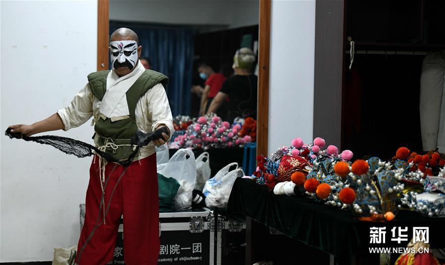 8月14日,在河北石家庄大剧院,石家庄市评剧院一团演员在试装。新华社发(陈其保 摄)