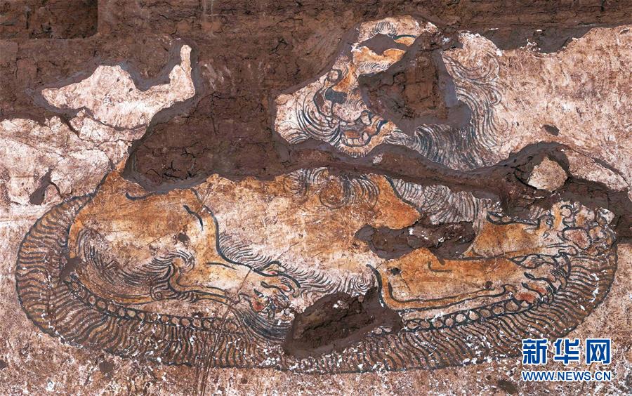 这是李道坚墓壁画卧狮图(2017年6月16日摄)。 新华社发(陕西省考古研究院提供)