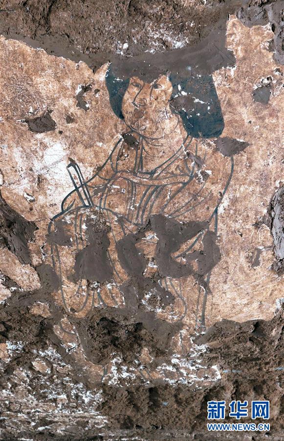 这是李道坚墓壁画仕女图(2017年6月21日摄)。 新华社发(陕西省考古研究院提供)