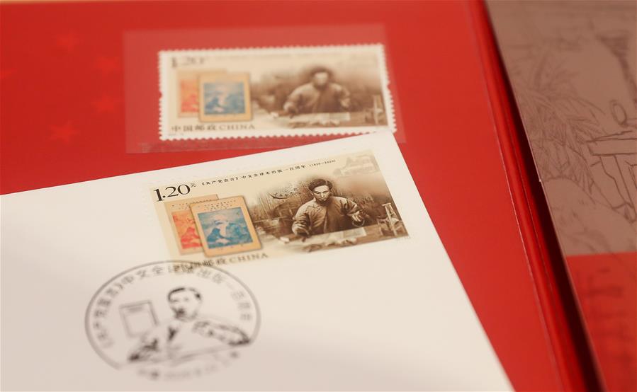 8月22日拍摄的《共产党宣言》中文全译本出版一百周年纪念邮票。新华社记者 丁汀 摄
