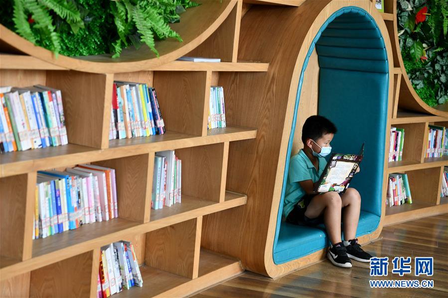 8月24日,小朋友在合肥市庐阳区悦书房·杏花书院里阅读。 连日来,安徽省合肥市持续高温天气,不少市民来到家门口的“城市阅读空间”看书、学习,享受清凉。近年来,合肥市打造集借书、购书、看书为一体的城市阅读空间,形成“一刻钟阅读圈”,倡导全民阅读。 新华社记者刘军喜摄