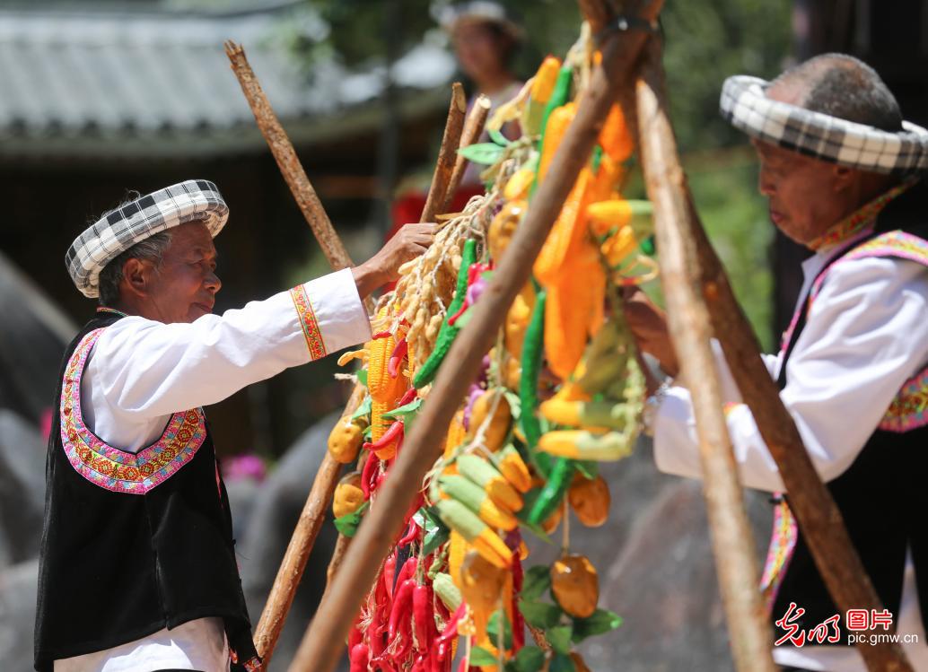2020年8月27日,在湖南省邵阳市隆回县虎形山瑶族乡崇木凼村,两位花瑶姑娘在进行民俗表演。每年农历七月初八至初十,隆回县小沙江镇和虎形山瑶族乡的瑶族同胞们载歌载舞、赶集会友,纪念传统节日"讨僚皈"。(曾勇摄/光明图片)