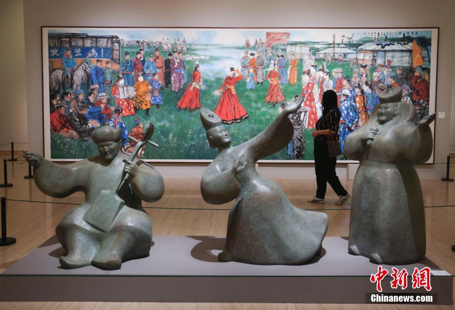 8月28日,北京,游客在中国美术馆参观“以美扶智——中国美术馆脱贫攻坚美术作品展”。中新社记者 杜洋 摄