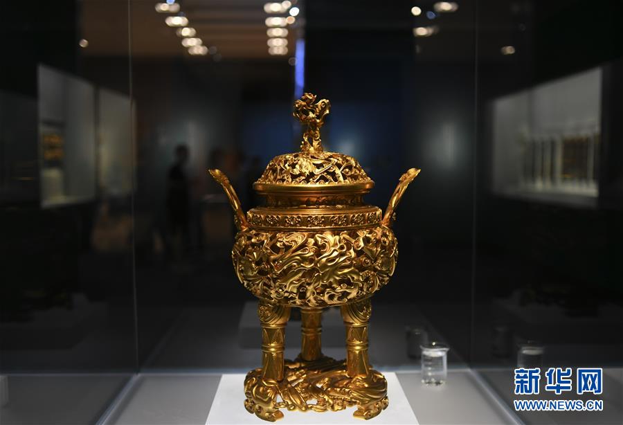 这是8月30日在北京中国国家博物馆的“格物匠心——福建传统工艺展”上拍摄的金雕刻百蝠脱胎漆鼎炉。当日,“格物匠心——福建传统工艺展”在北京中国国家博物馆开幕。展览分为“艺韵百态”“工致精巧”“千文万华”“石以名志”“东方神韵”五个单元,系统呈现出不同时期不同门类的工艺美术作品200余件(套),展示了福建传统工艺所承载的文化底蕴与丰富内涵。新华社记者 金良快 摄