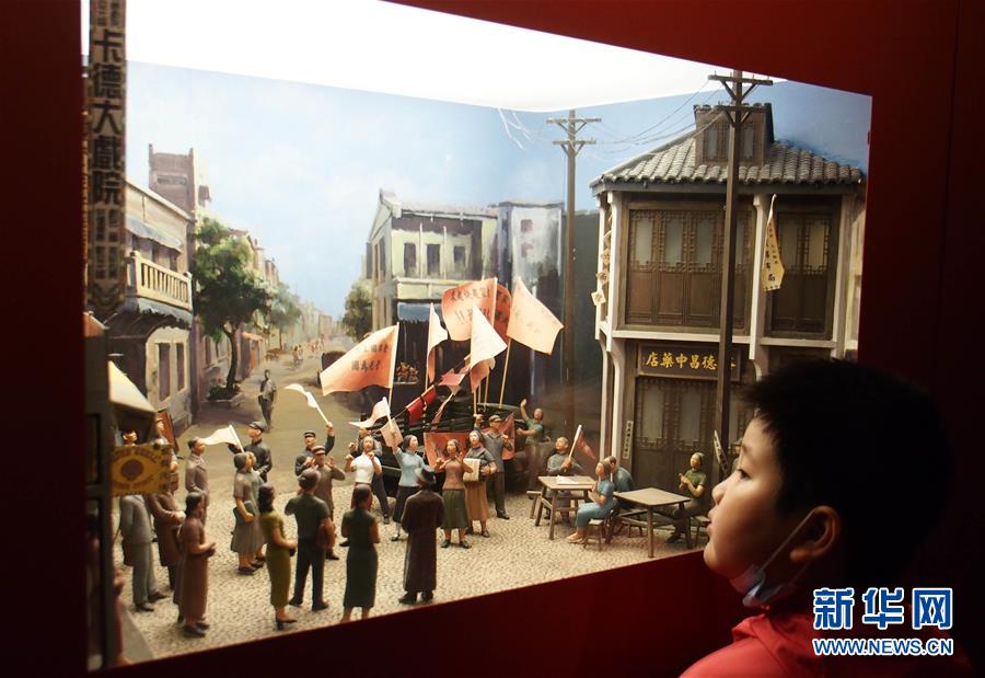 8月25日,一名小观众在上海四行仓库抗战纪念馆内参观。近日,在四行仓库保卫战原址上设立的上海四行仓库抗战纪念馆成为热门参观点。 新华社记者 任珑 摄