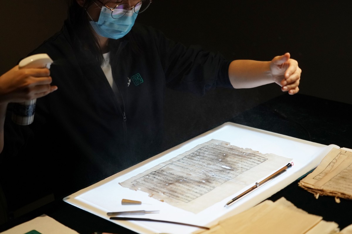 静静躺在展柜中的古籍,有敦煌遗书、早期佛经、宋元善本、金石拓本、明清古籍、少数民族古籍等,另有我国早期古籍修复的重大成果《赵城金藏》等同时展出。这些古籍中有许多在修复前,已出现虫蛀、鼠啮、粘连、酸化、絮化等不同类型的疑难杂症。修复师们要诊断、开方、动手术,本着修旧如旧的原则,让它们重现光彩。遇到复杂情况,一叶古籍就需要几天甚至十几天时间来修复。