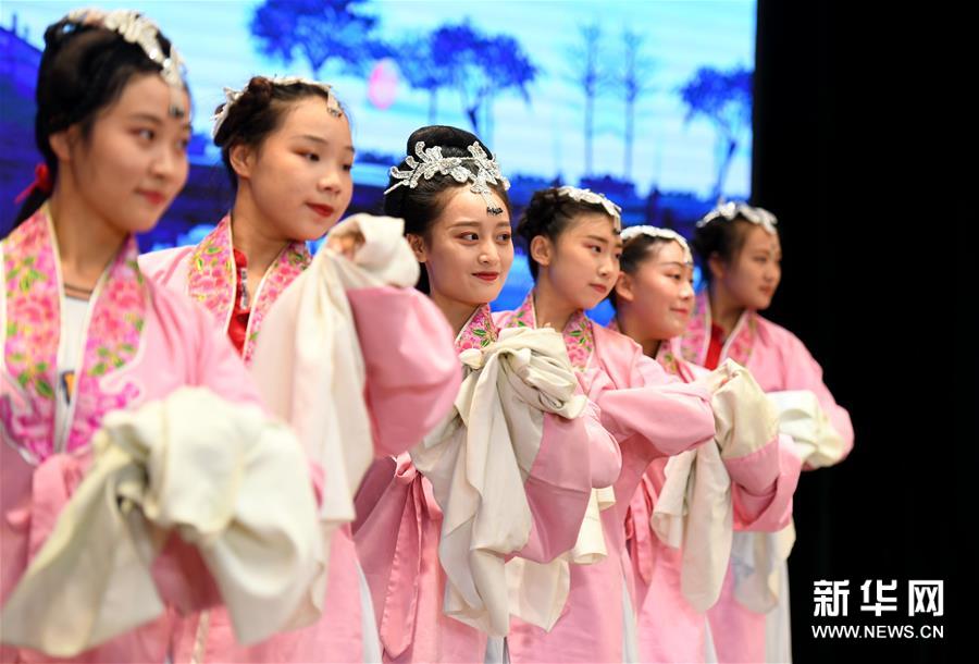 8月31日,河北省石家庄市评剧院一团演员在正定荣国府影视基地大戏院内表演舞蹈。新华社记者骆学峰摄